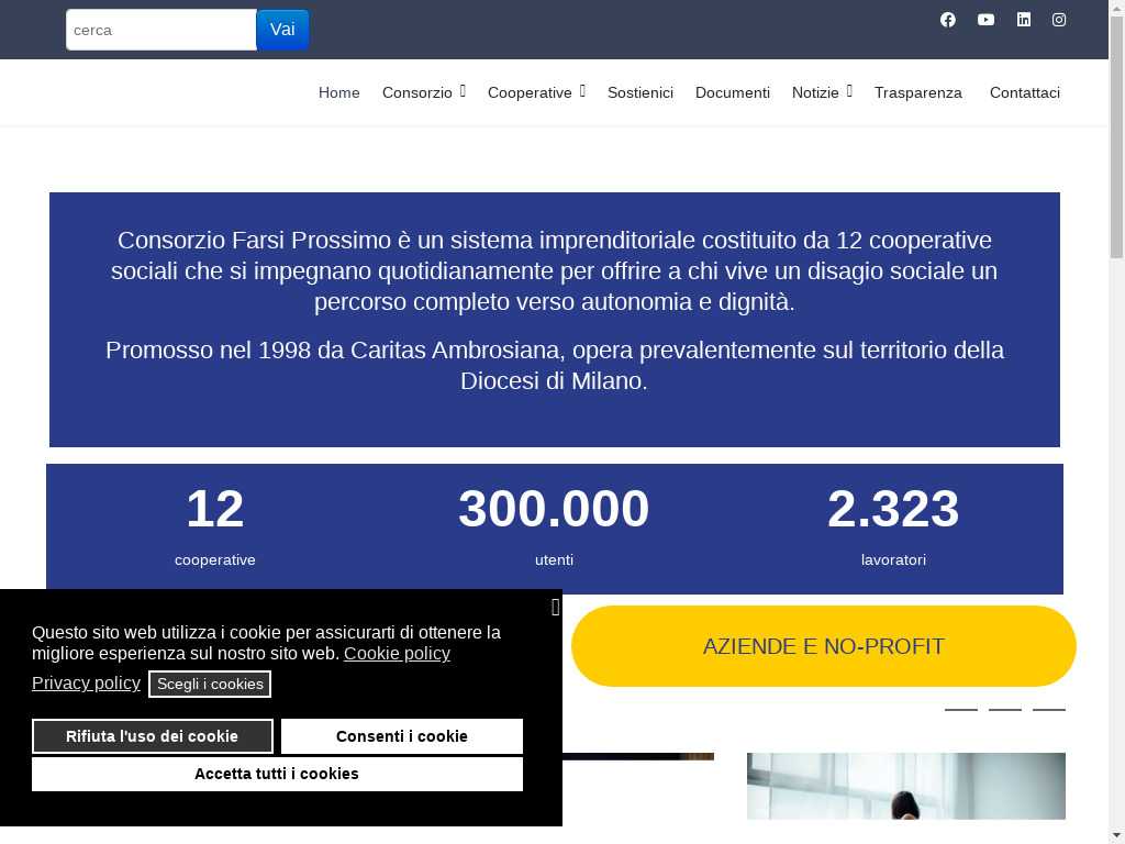 Sito del Consorzio Farsi Prossimo scs Onlus
