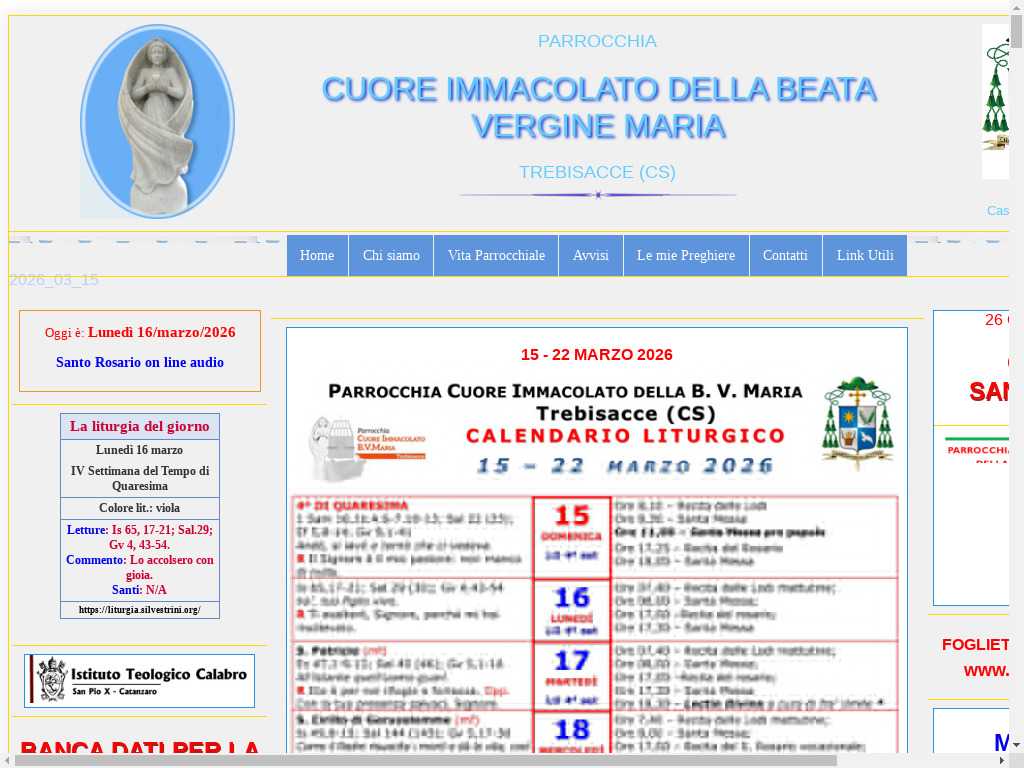 118 sito web della Parrocchia "Cuore Immacolato della Beata Vergine Maria" - Trebisacce (CS)